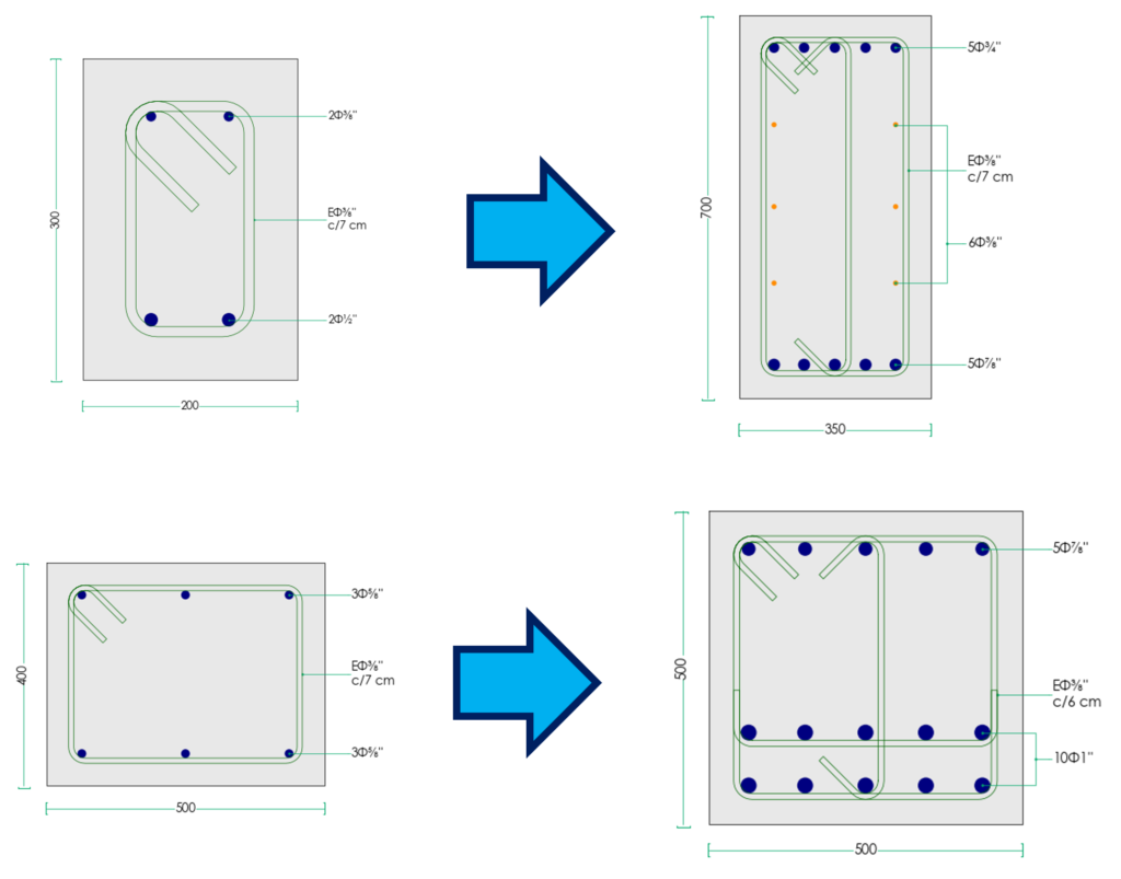 - Parte de la sección y el refuerzo dispuestos inicialmente, por lo que no entregara una sección mas pequeña, o con menos acero.