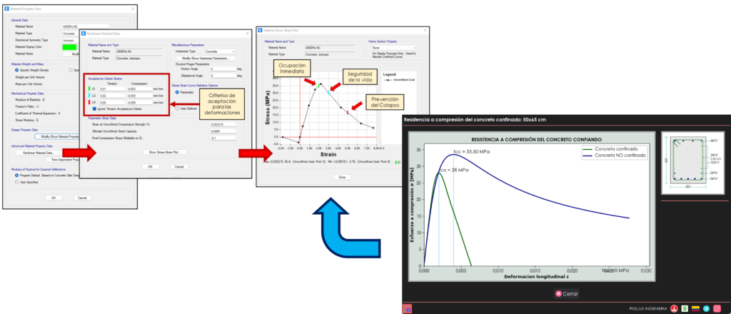 , se puede observar la resistencia del concreto confinado en la sección, la cual se puede comparar con lo utilizado en ETABS.