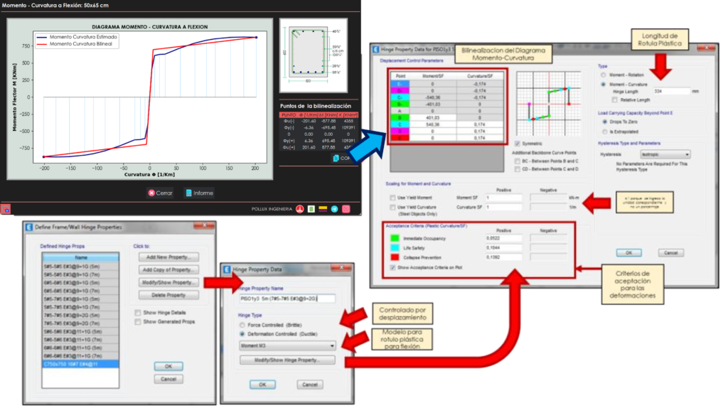 Con esta información se pueden caracterizar las rotulas plásticas en ETABS: