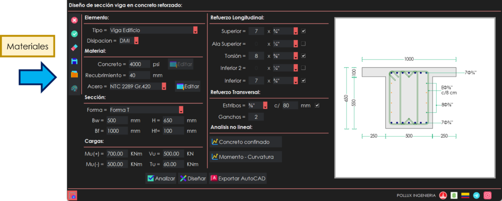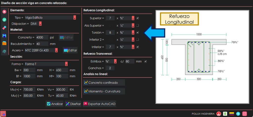 Buenos días, en esta guía te voy a mostrar cómo utilizar POLLUX STRUCTURAL DETAILING para el diseño de sección de vigas en concreto según la NSR-10 (ACI 318). La intención no es explicar la teoría del diseño de secciones.