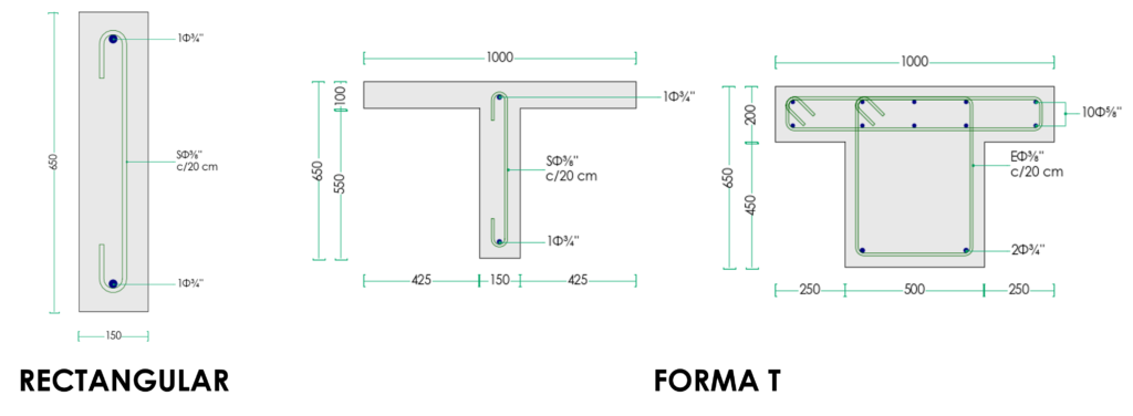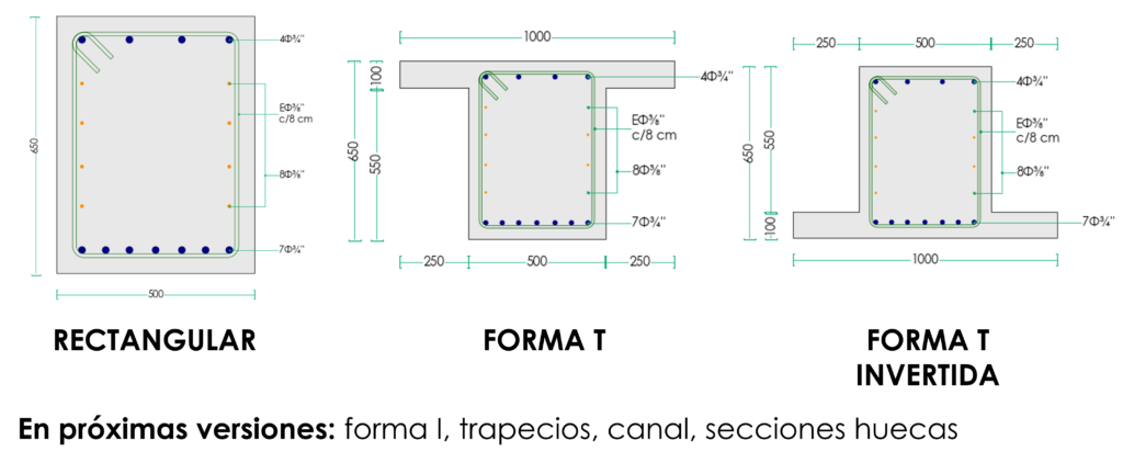 Actualmente están disponibles las secciones: rectangular, forma T y forma T invertida