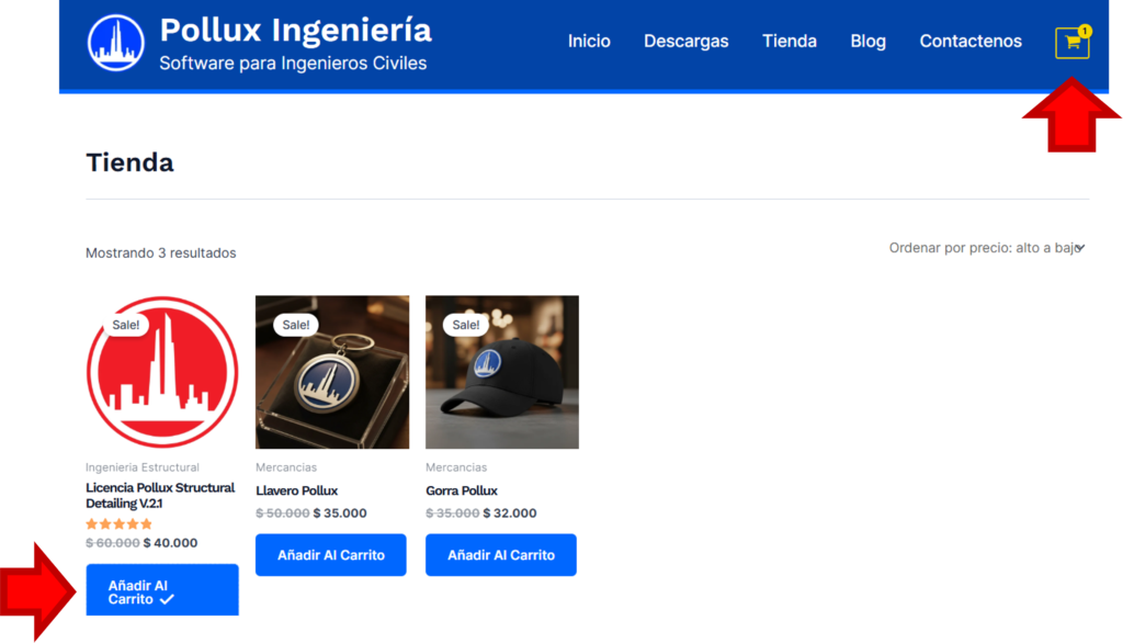 2. Acceda al carrito y finalice el proceso de compra.