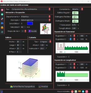 Incluye herramientas para el diseño de secciones de vigas, losas y columnas en concreto reforzado, y para el análisis de acciones sísmicas y de viento en edificaciones.